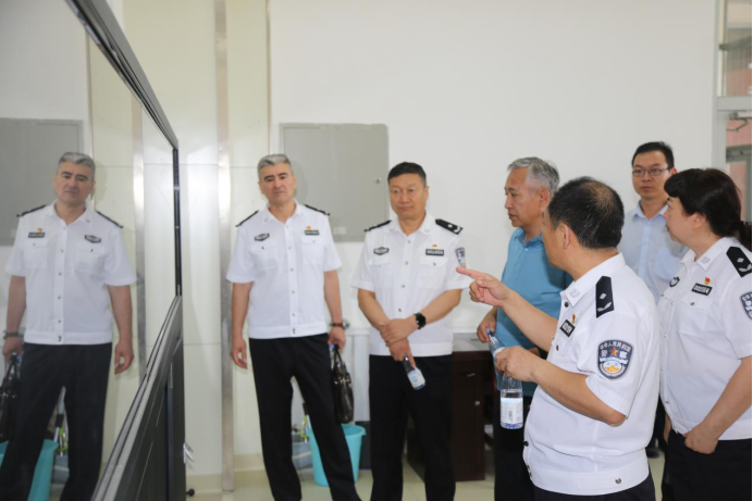 调研组实地查看校园环境,射击馆、宿舍楼、教学楼、图书馆、学员餐厅、体能馆、室外靶场等并对暑期工作以及迎新工作进行深入了解。