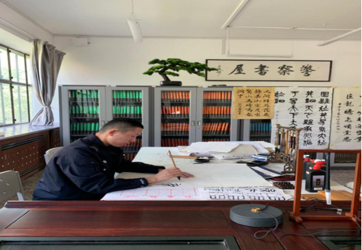 正在练书法的学警