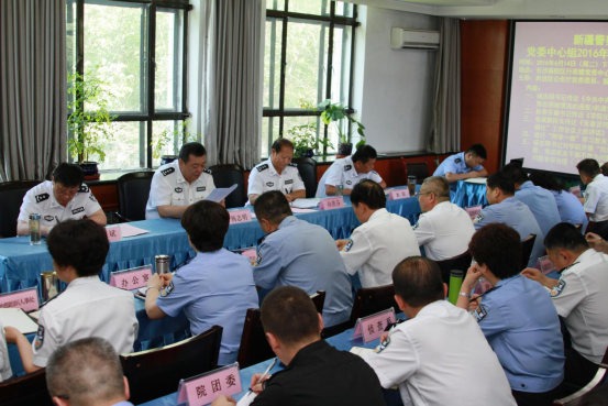 6月14日下午,自治区公安厅党委委员、学院党委书记、副院长杨志明主持召开学院党委中心组2016年第九次集体学习。院党委副书记、副院长(厅长级)孙贵芬,院党委委员、副院长:张斌、桂阳及各部门党支部书记和负责同志参加学习。