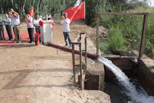 伴随着欢快的音乐,李娟院长和叶飞书记同时剪断彩绳,井水从管道喷涌而出,参加仪式的所有人一起载歌载舞,欢庆这一激动人心的时刻。在这农忙浇灌季节,两口井的开通切实为英买里全村2000多亩地解决了灌溉的燃眉之急。住村工作组全体成员倍受鼓舞,将更加努力的为三个村、为希依提墩乡、为麦盖提做出更多努力。