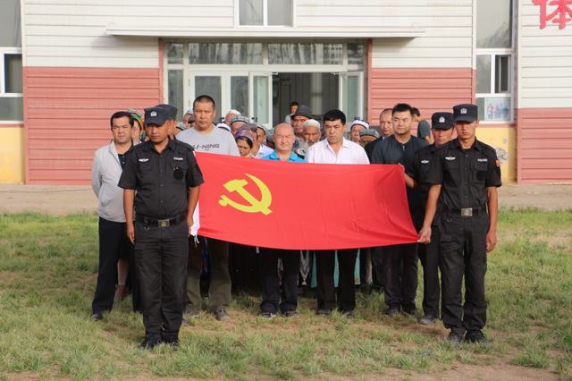 工作组和村全体党员护送党旗到宣誓台前,面对党旗庄严宣誓,重温入党誓词。工作组总领队、临时党支部书记帕提曼·吐尔逊和村党支部书记阿不都热依木·吐松与全体党员一起依次在“牢记党的光荣使命,切实发挥党员先锋模范作用”横幅上签字。