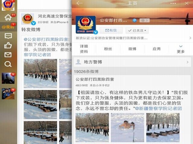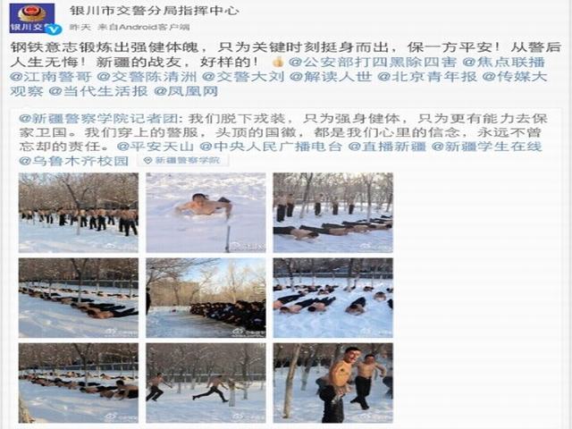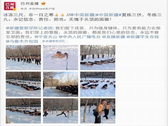 公安部官方微博转发学院记者团 “耐寒训练强身健体守边关” 微博