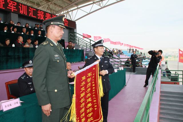 李仲民副巡视员宣读了系列表彰决定,主席台领导为在军训中表现优异的先进集体、先进工作者、优秀教官颁发荣誉证书,孙贵芬副书记为承训部队赠送了锦旗。
