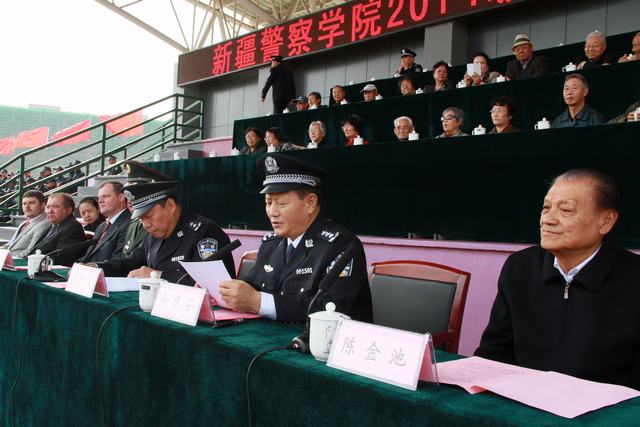 9月29日上午,学院在米东校区运动场隆重举行2014级新生开学典礼暨军训汇报表演大会。自治区高级人民法院原党组书记陈金池、原院长买买提·肉孜,院党委副书记、厅长级副院长孙贵芬、副巡视员李仲民、新疆军区69242部队少校副营长买买提·沙塔出席大会。学院教师代表、老干部代表、外警培训班全体外警及新生家长代表参加大会。大会由副巡视员李仲民主持。