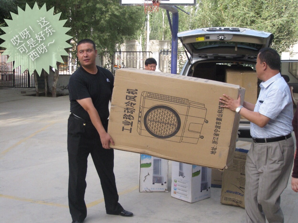 考虑到南疆夏季气候炎热,驻村生活条件艰苦,李娟院长一行还为同志们带来了冷风扇等慰问品,大家一致表示,再也不用担心白天工作汗流浃背、晚上热得睡不着这种状态了。