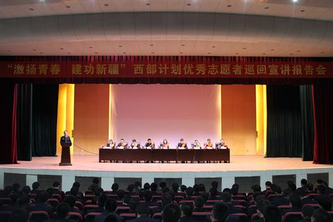 2012年3月19日下午,自治区团委“西部计划·优秀志愿者宣讲团”在我校多功能厅举行报告会,自治区团委志工部副部长李鑫、校团委书记王婕出席报告会,我校10级、11级500余名学员参加报告会。