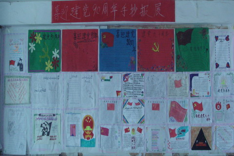 为庆祝中国共产党建党九十周年,我校中专部分团委于六月十三日举办了主题为“喜迎建党九十周年”手抄报展。