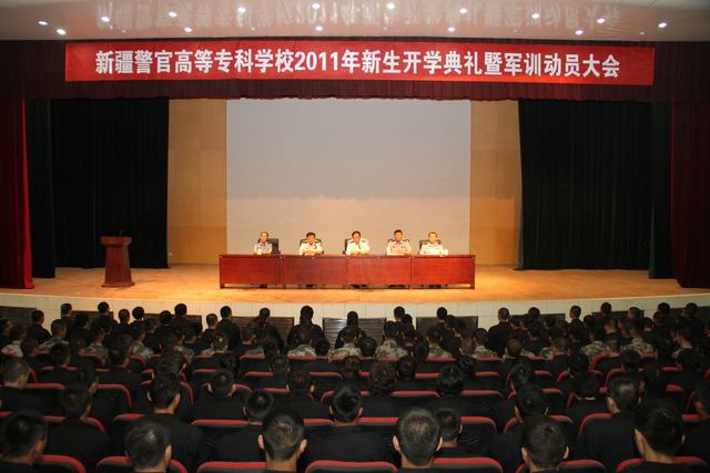 9月8日上午,我校隆重召开2011级新生开学典礼暨军训动员大会。校党委委员、副校长张斌出席大会,学生处处长石建华、副处长马益民、副处长吐尔逊、校团委书记王婕,2011级学员各大队学管干部、中队长和全体学员参加大会。