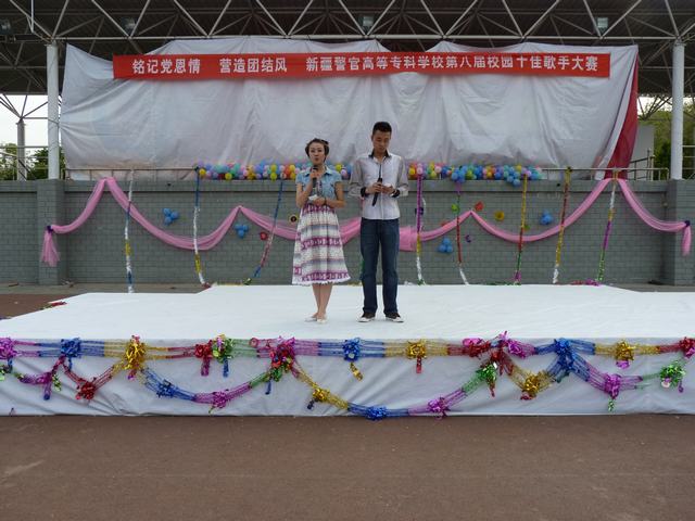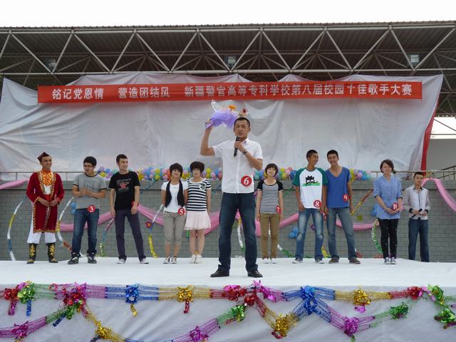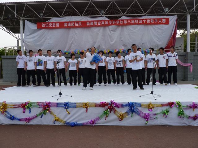 为庆祝中国共产党建党90周年,深入开展民族团结教育,全面展现我校学员立志、修身、博学、报国的精神面貌,5月20日下午,学生处团委隆重举行“铭记党恩情营造团结风”第八届校园十佳歌手大赛。学生处副处长马益民、学生处副处长吐尔逊·阿不力孜、学生处副处长万琼、团委指导老师杨琳静及各大队大队长及全校学员一同观看了比赛。