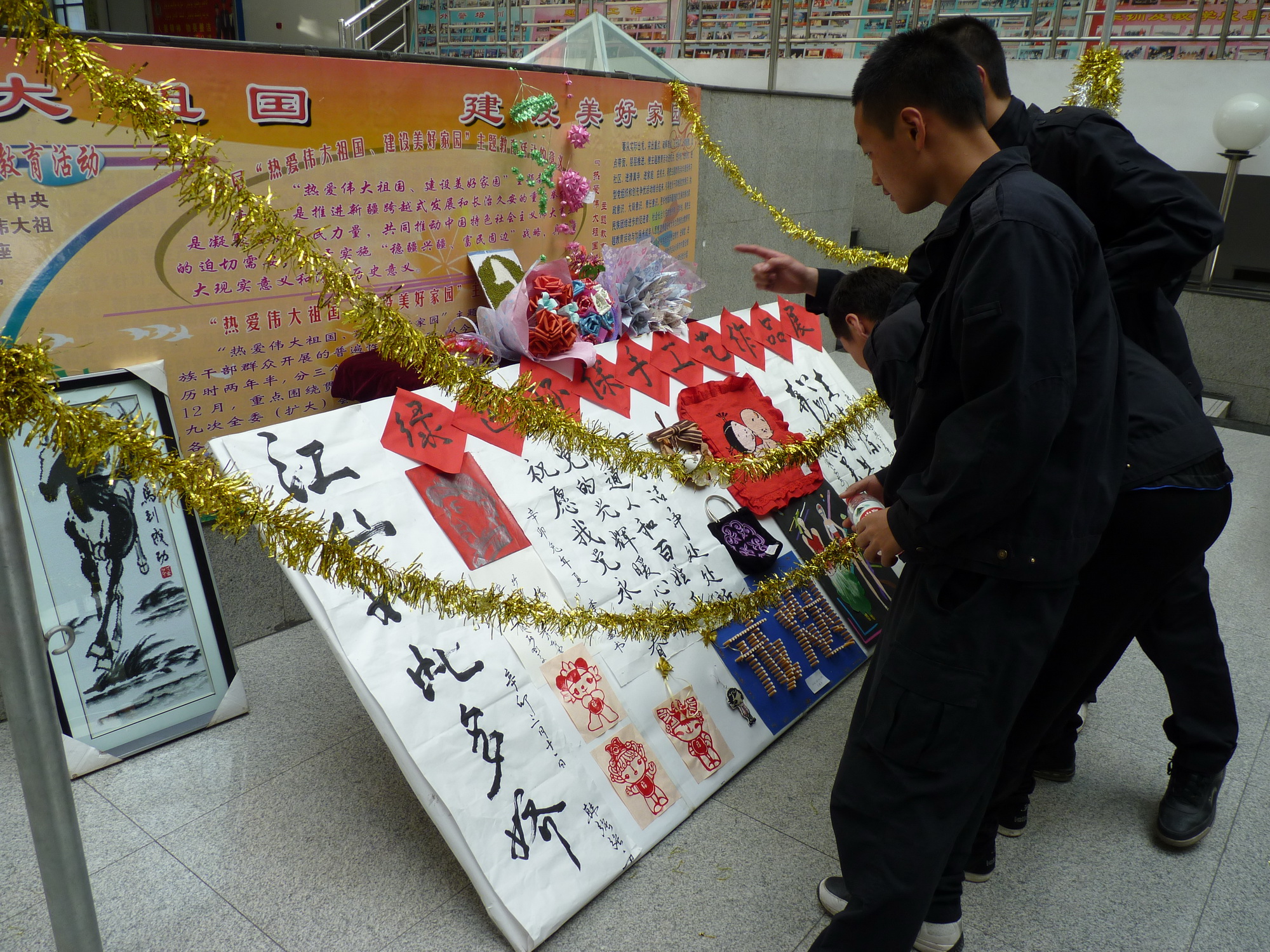4月18日,由学生处团委举办的绿色环保手工艺作品展在教学楼大厅精彩亮相。