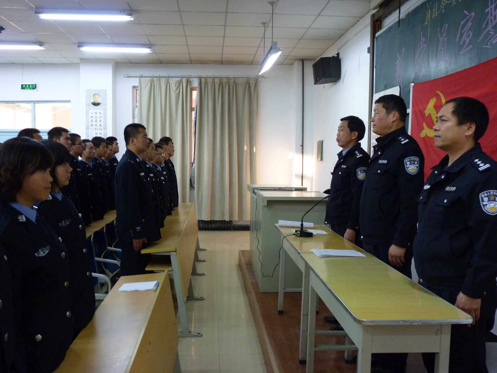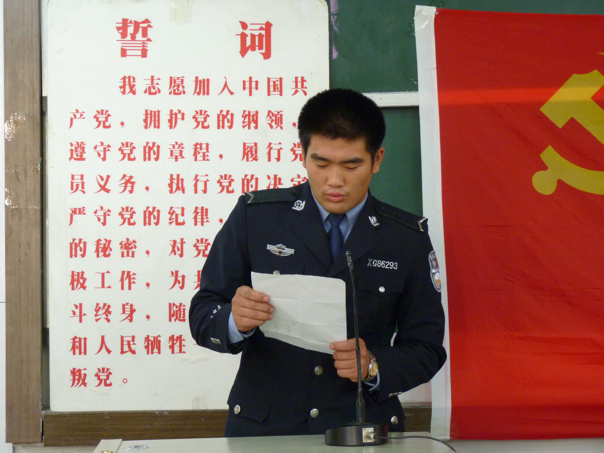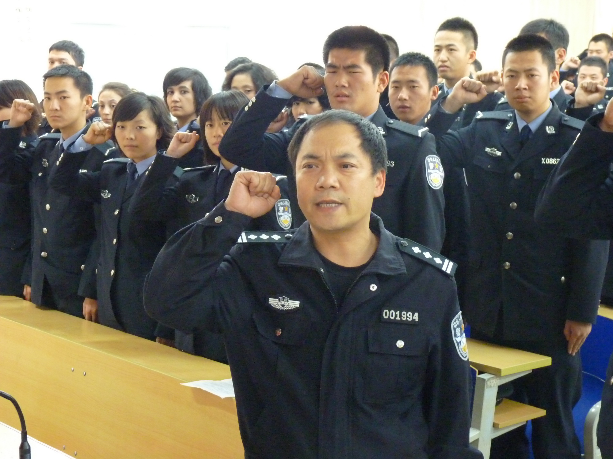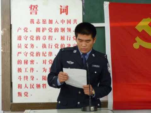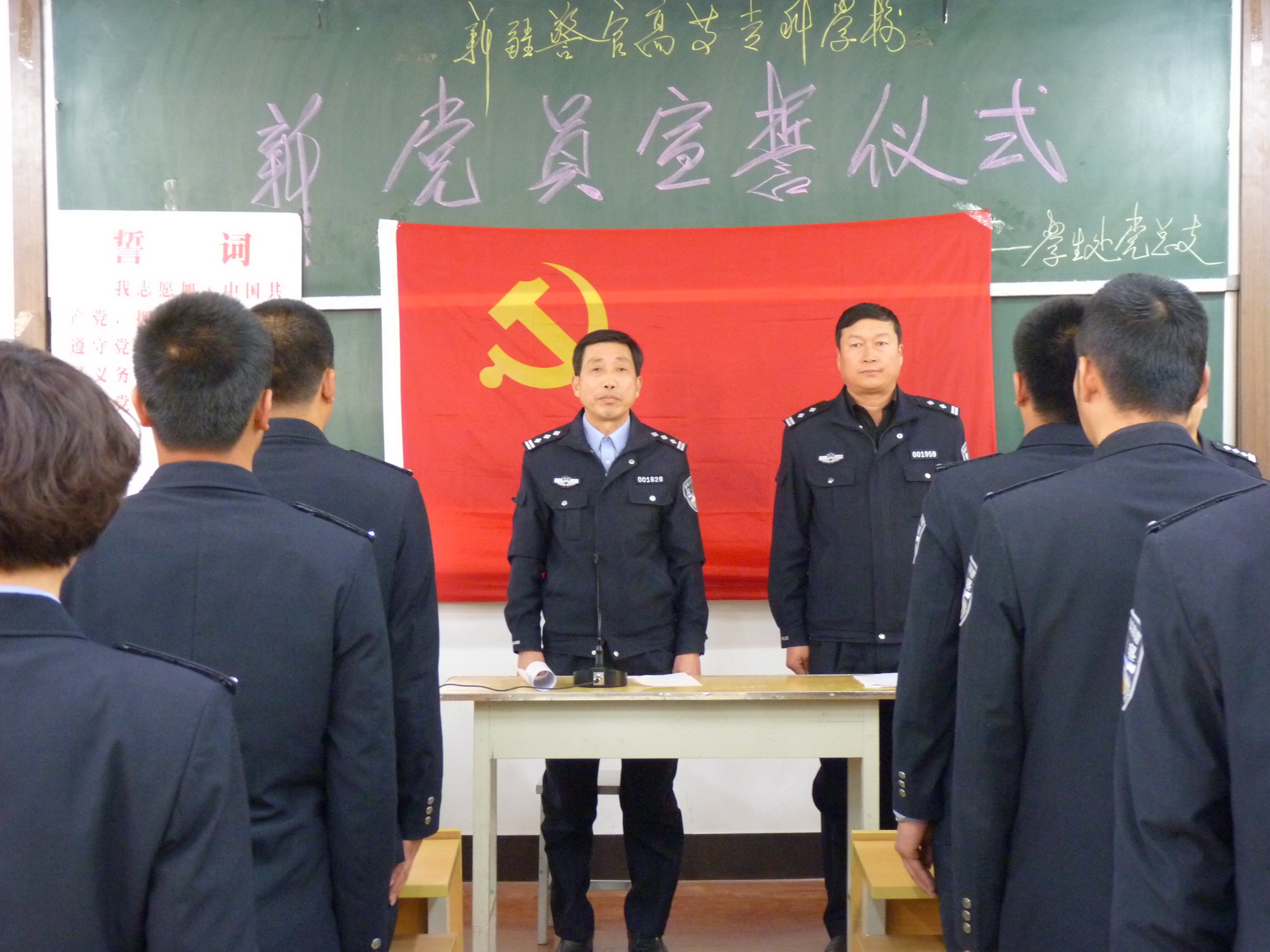 2010年11月12日下午新疆警官高等专科学校新党员宣誓仪式在1号教学楼101合堂隆重举行。学生处党总支副书记、学生处副处长马益民、08公安大队教导员王百科、08法信大队大队长余涛出席了本次仪式。