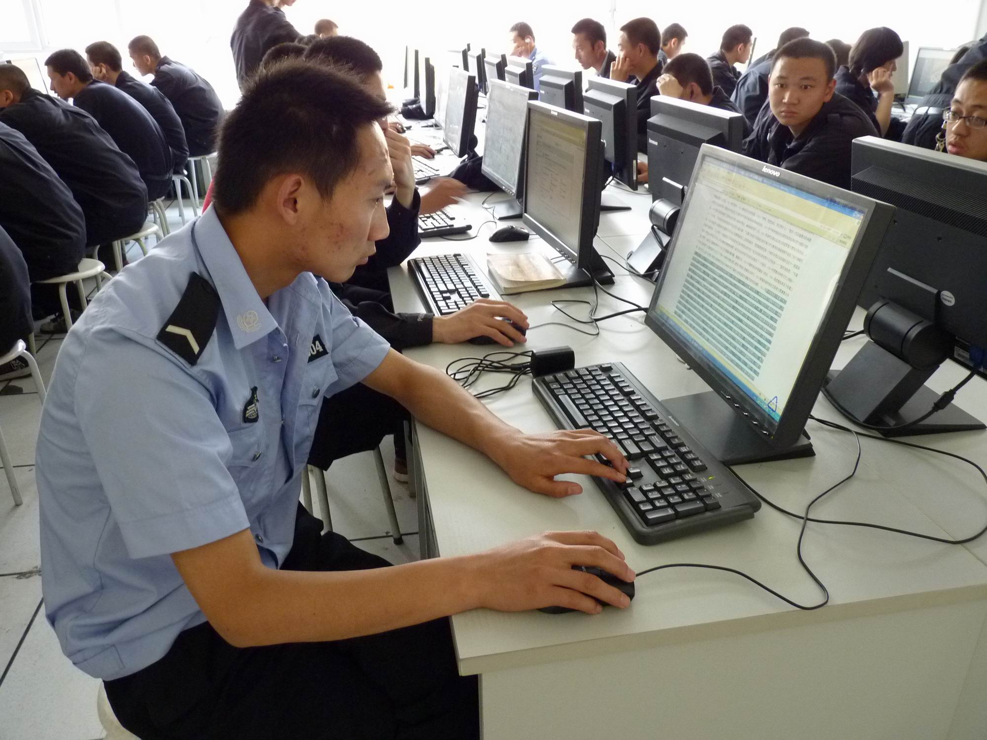 比赛中,参赛队员们的手指在键盘上极速的跳跃着,08法信大队学员文虎以10分钟共打621个字的速度夺得了第一名,刷新了打字比赛的新纪录。