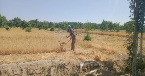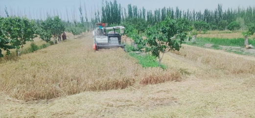 塔特勒克艾日克村共1600亩小麦,将出动4台联合收割机,机收面积达到95%,对于套种面积较小,使用收割机不方便的麦田使用人工收割,面积5%。根据成熟情况,预计在6月底左右完成全部收割任务。