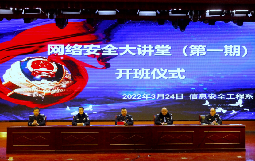 2022年3月24日,信息安全工程系组织350名专业学警,在学院多功能厅举办了“网络安全大讲堂”开班仪式暨第一期培训班,学院党委委员、副院长孙常平,信息安全工程系主任盛国栋、系部教师参加。