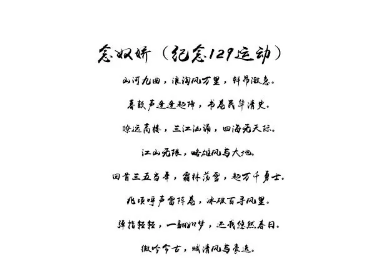 一二九运动已经过去了85年,今天,我们纪念它不仅是缅怀过去,追念先人;更是为了让我们永远铭记这个神圣而又伟大的日子。一二九运动发生后,在1936年12月9日的西安,万余学生举行一二九纪念活动,张学良将军为避免发生流血事件,向同学们表示在一个星期之内用事实对学生作出回答,三天后西安事变爆发。这是一群学生与一位将军情怀的契合与共鸣!