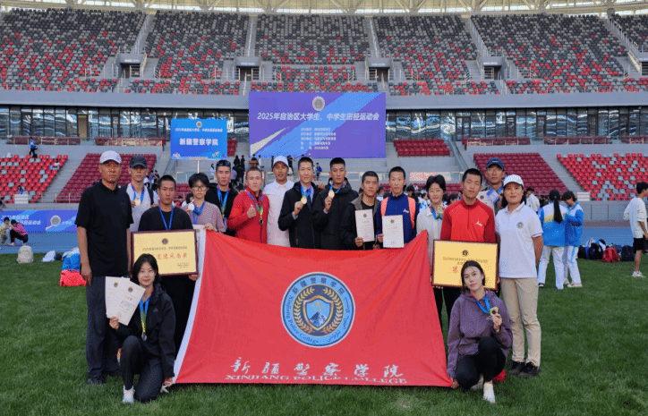 5月30日,2025年自治区大学生、中学生田径运动会在乌鲁木齐市奥体中心顺利举办。学院15名学警组成代表队参赛,获得团体总分“第六名”的好成绩;侦查系学警瓦日斯·吐尓逊、附属保安学校学警侯乐被评为“优秀运动员”;学院教师李文、曲直被评为“优秀教练员”;学院荣获“体育道德风尚奖”。