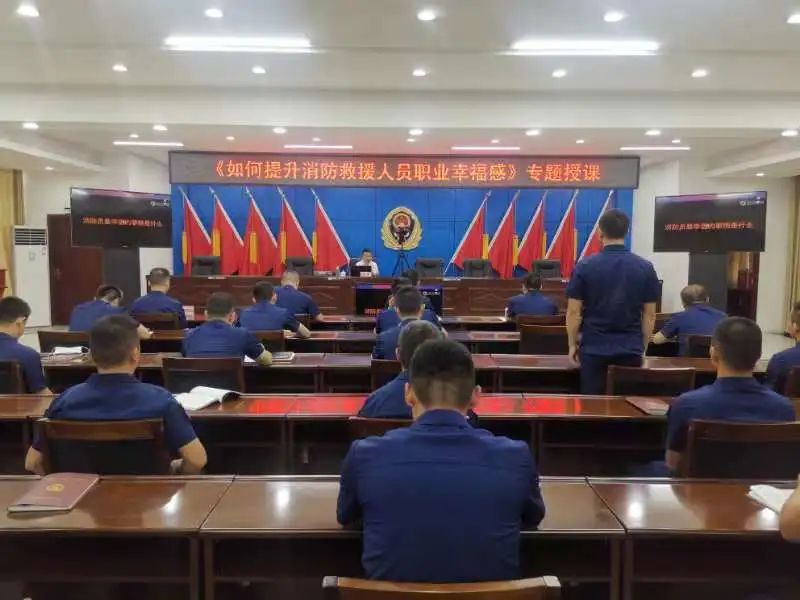 刘楞根据基层消防救援指战员理解把握职业幸福感内涵实质的现状、面临的职业心理压力和工作中的迷茫困惑,从工作本身、职业前景、组织管理、人际关系、个人能力、外部支持等方面,深入分析职业幸福感缺失的原因,从提供平台、加强沟通、队伍管理、自我提升、社会支持、心理疏导、传递正能量等方面,探讨交流提升职业幸福感的有效对策等内容进行了深入浅出的讲授。以问卷调查、现场互动、随机提问等多种方式增强讲课效果,把视频教学和图片文字相结合、线上线下同步交流,幸福理论和大量实例融汇贯通,形象地讲述了消防职业特点和消防职业在社会的认可度,让全体消防救援指战员对职业幸福感有了全新的认识,进一步提升了消防救援职业的荣誉感,更加深刻地认识到自身的价值所在。
