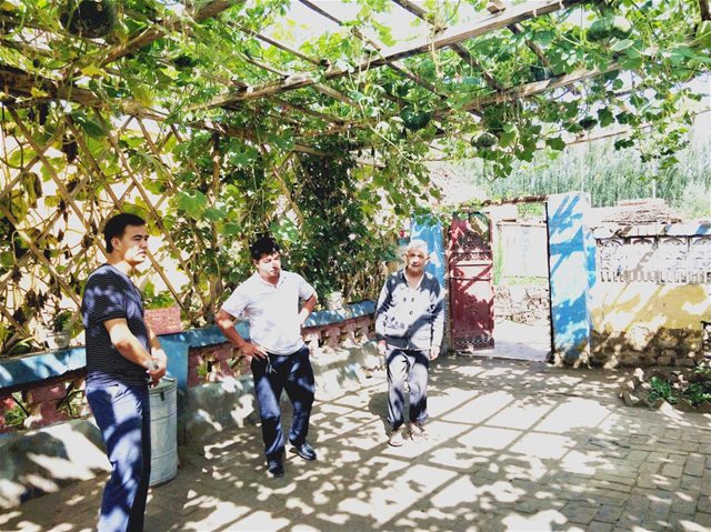 村民阿依木尼沙家的庭院过去堆放着各种杂物,通过工作队队员、村干部和互帮互助小组的帮助清理,将各种杂物全部清理了,院子一下大了许多,在清理出的土地上先后种植了葡萄树、果树、西梅、西红柿、辣子、白菜等作物。“今年5月份至今,我们家基本上没去巴扎买菜,全部吃的是自家地里产的无公害蔬菜。” 阿依木尼沙说。