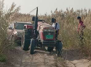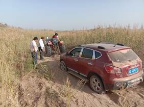 与村全体拾棉花村民座谈 拖拉机拉越野车