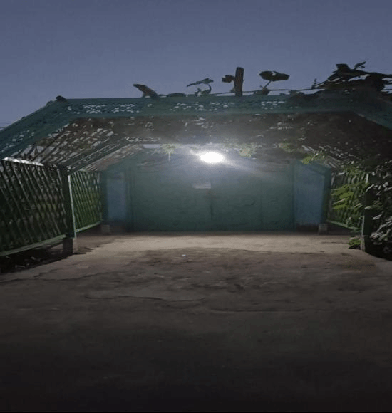 (图为村委会安装太阳灯后的景观)