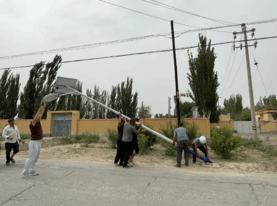 长期以来,苏帕墩村的村道“无灯、缺灯”问题 ,不仅影响村民夜间出行,更潜藏着交通安全隐患,成为制约乡村发展、影响群众安全感的痛点。驻村工作队将解决“行路难”问题作为践行为民办实事的首要任务。为将这件好事办好、实事办实,工作队迅速行动,一方面,通过入户走访、实地勘察,精准掌握全村11盏旧路灯的现状和群众实际需求,另一方面,科学规划,精心制定了“翻新一批、新增一批”的路灯改建方案,计划新增主干道34盏、居民区18盏高亮度太阳能路灯。从基坑开挖、模板支设、灯杆竖立、线路调试,工作队队员全程参与,严格把关。村民们也自发加入到施工队伍中,参与路灯改建工程。8月14日,工作队与村民勠力同心,圆满完成63盏路灯安装任务,为3.7公里村道披上“光明外衣”,惠及119户435名村民。如今,村民们晚饭后可以安心散步话家常,孩子们放学路上也多了安全保障。